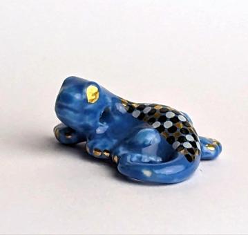 Aufgepasst Sammler und Tierliebhaber! Der ultimative Hingucker für Ihr Zuhause ist da: Unsere handbemalte Keramikfigur in Form eines hellblauen Gekkos. Mit seinem farbenfrohen Rücken, bestehend aus kleinen Quadraten in Weiß, Schwarz und Gold, wird er nicht nur Ihre Sammlung aufpeppen, sondern auch garantiert für neidische Blicke Ihrer Gäste sorgen.