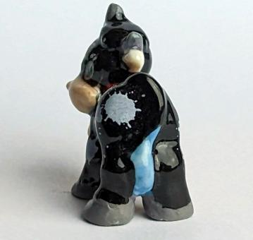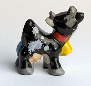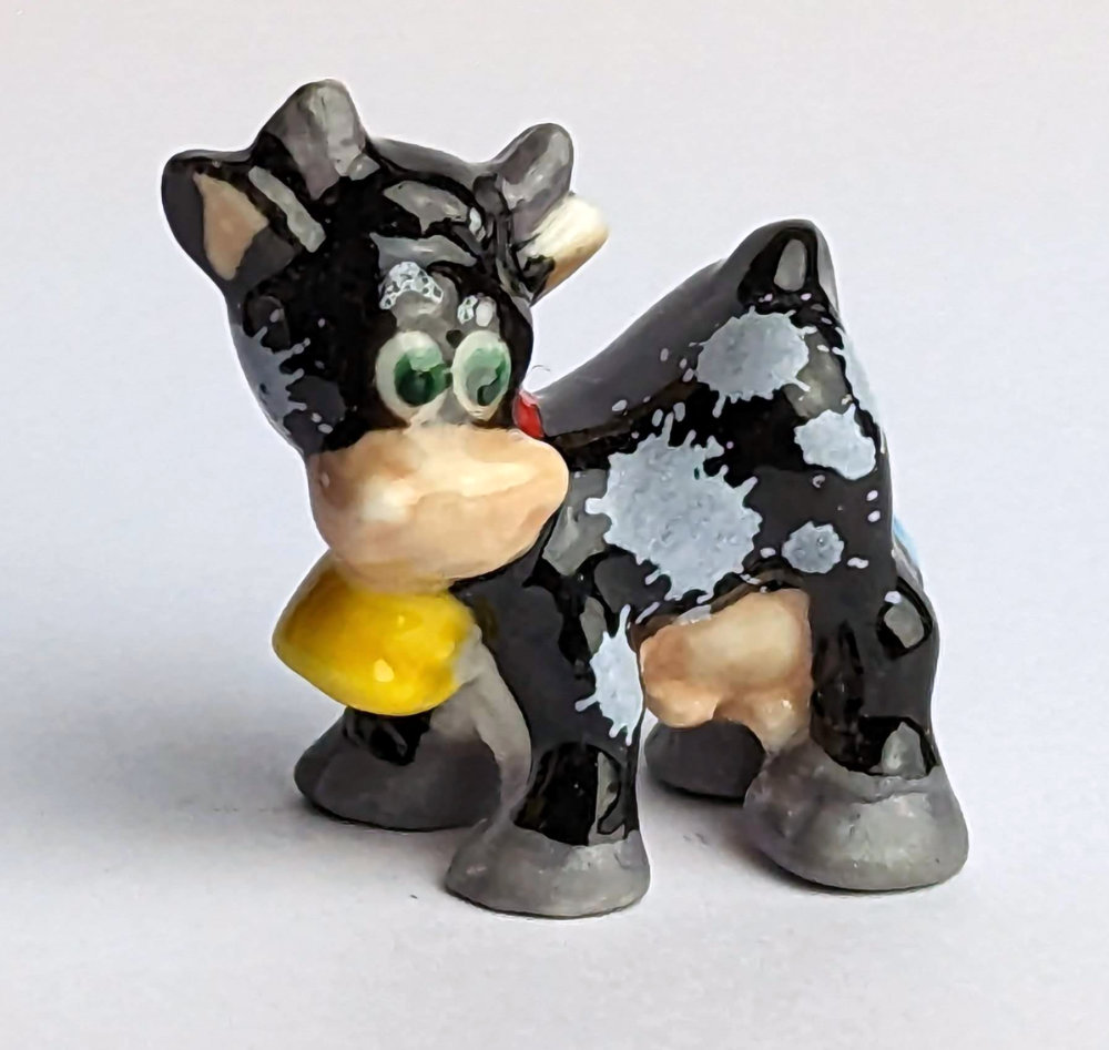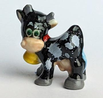 Die besondere Attraktivität der Figur liegt in ihrer frechen und unverwechselbaren Gestaltung, die durch die weißen Flecken und die gelbe Kuhglocke hervorgehoben wird. Diese besonderen Details verleihen der Figur eine unverwechselbare Persönlichkeit und machen sie zu einem einzigartigen Kunstwerk.