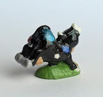 Die künstlerisch liebevoll handbemalte Keramikfigur einer hüpfenden, glücklichen Kuh auf einer Blumenwiese ist ein wunderschönes und einzigartiges Kunstwerk für jeden Kuh-Liebhaber. Mit einer Größe von nur 2 cm passt diese Figur perfekt in jedes Regal oder jede Vitrine und ist somit auch eine tolle Ergänzung für jede Sammlung.