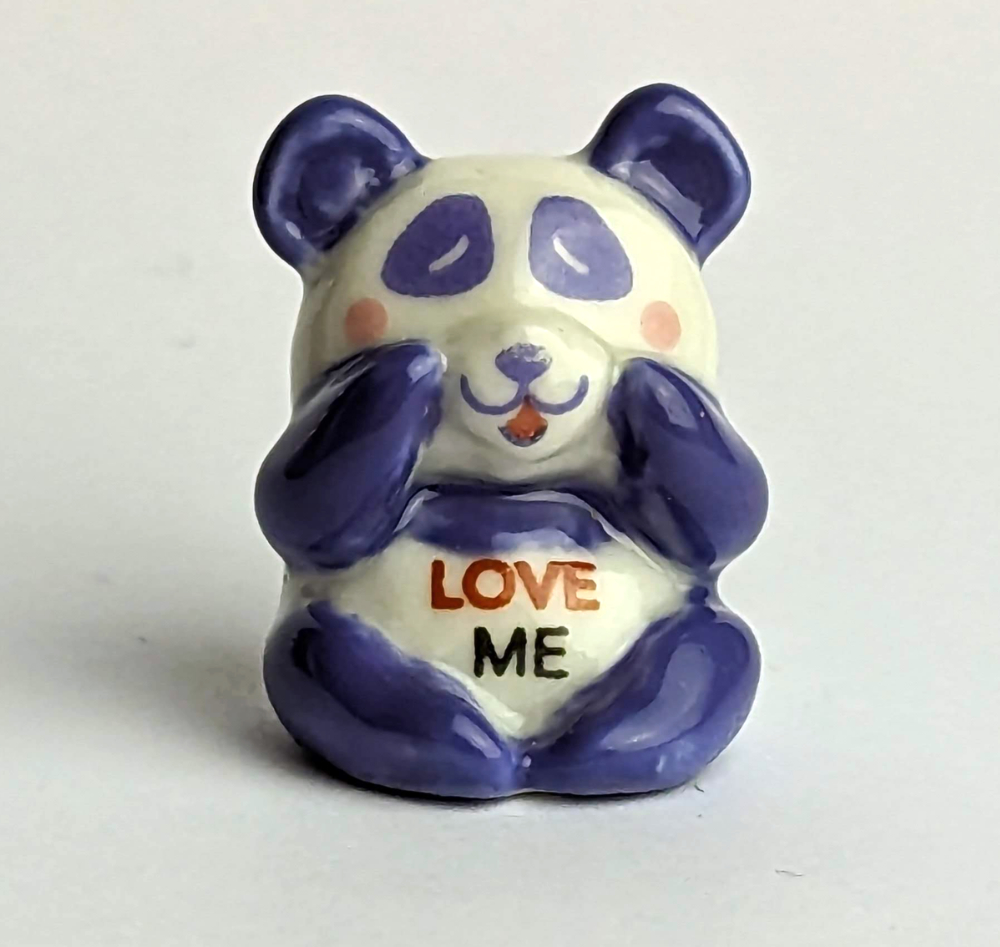 Diese bezaubernde Keramikfigur in Form eines Panda ist ein echter Hingucker in jeder Sammlung. Der kleine Panda ist liebevoll von Hand bemalt und zeigt sich in einer lila-weißen Farbgebung. Mit einer Größe von nur 2 cm ist die Figur besonders dekorativ und kann überall platziert werden. Besonders hervorzuheben ist die Botschaft die die Figur trägt, "Love Me" auf seinem Bauch. Eindeutiger kann man nicht sagen, dass man geliebt werden möchte.
